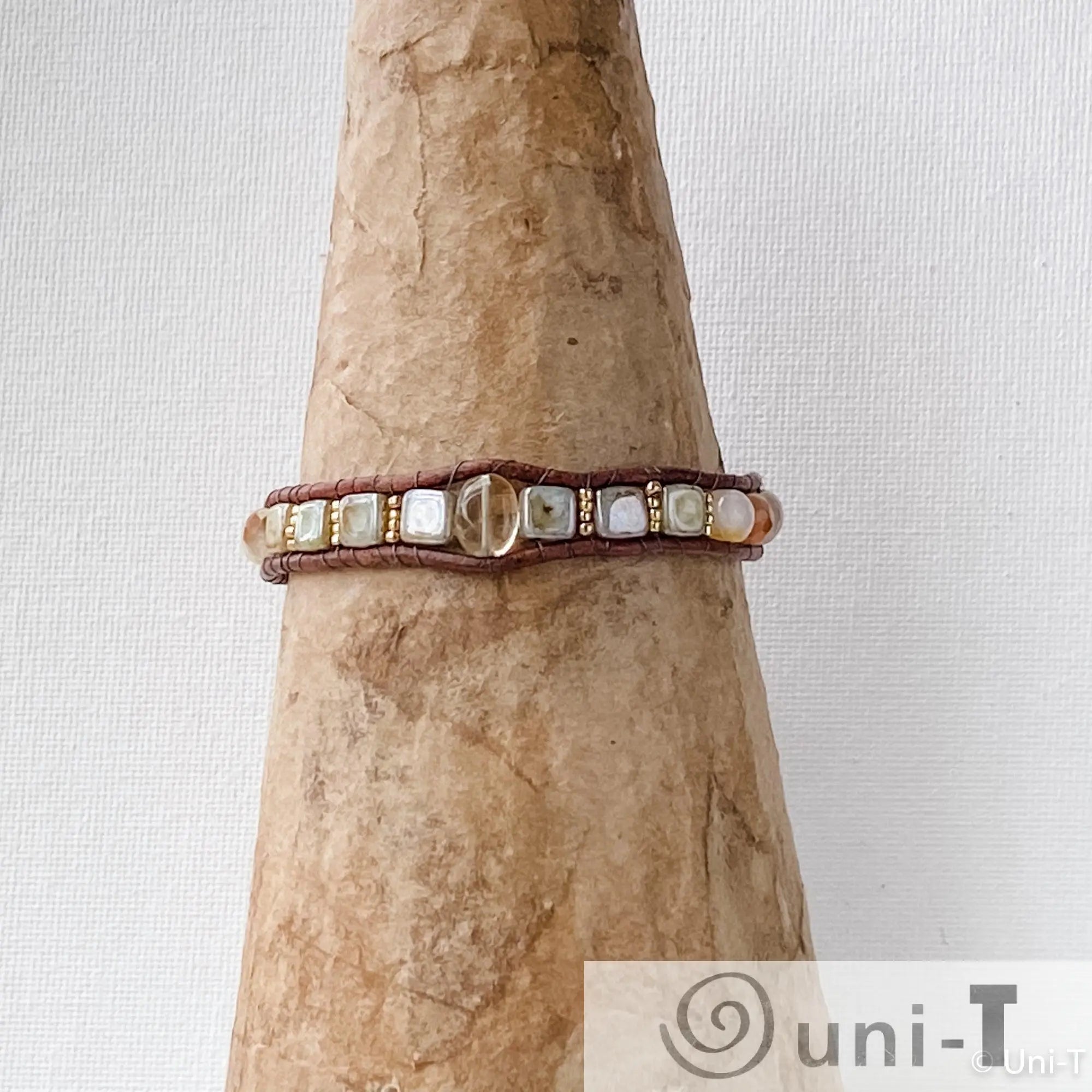 Leather and Gemstone Cuff/Multi Gemstone Cuff/ Pearl and Labradorite Bracelet