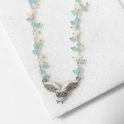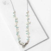 Mother of Pearl Owl with White and Aqua Chalcedony Cluster and Sterling Silver Chain Necklace