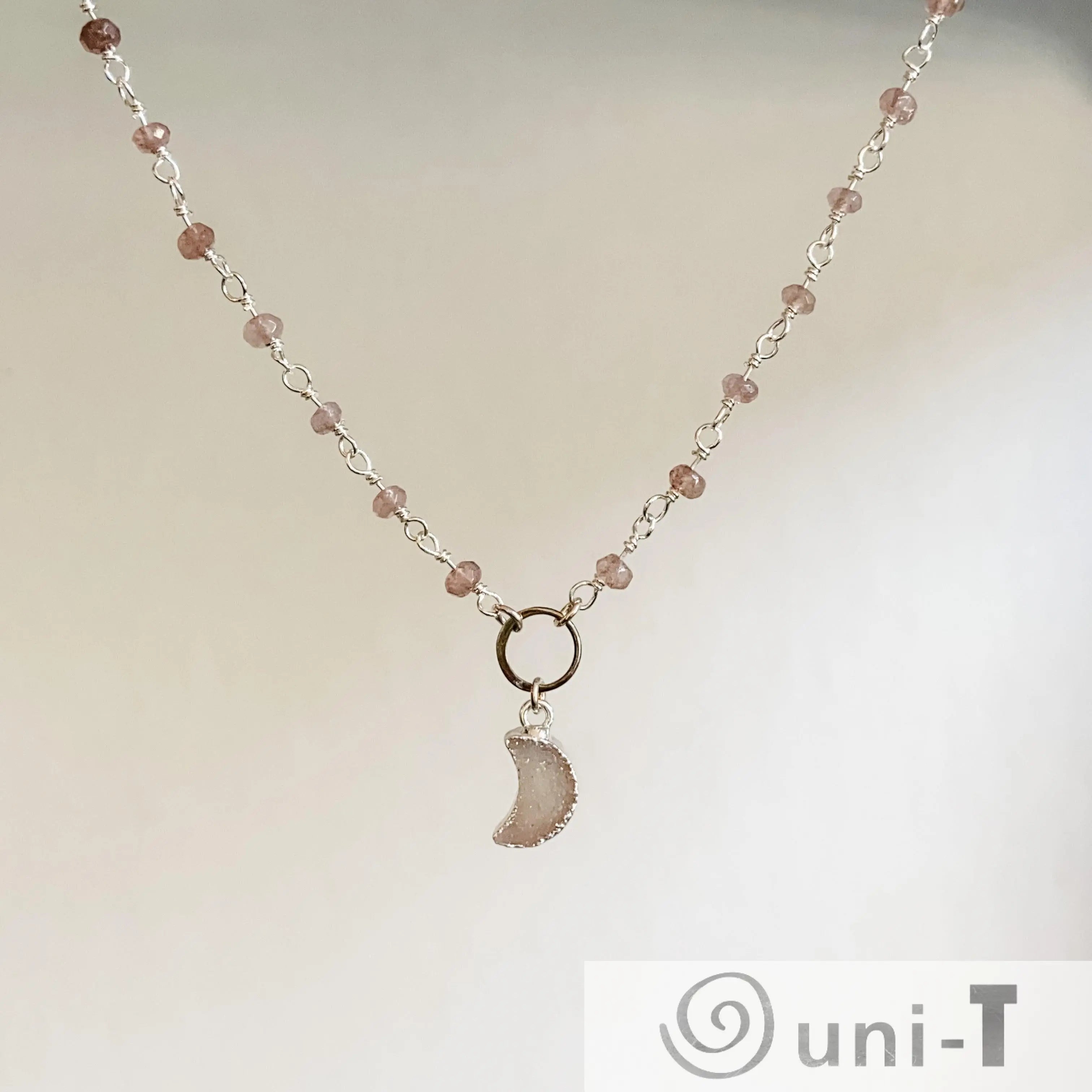 Druzy Quartz Mini Moon and Chocolate Moonstone with Sterling Silver Circlet Necklace