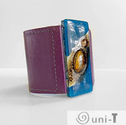 Handmade Leather Cuff with Recycled Fused Glass - Large