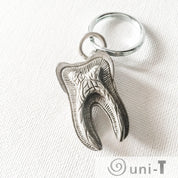 Put the bite on your fashion with this anatomical human molar keychain! If you or someone you love is a dentist, oral hygenist, orthodontist, or maxillofacial surgeon then this is a must-have item! This cross-section of a typical human molar is accurately reproduced from nature and is painstakingly handcarved and then cast in small batches in genuine pewter. A unique educational accessory sure to be used every day.