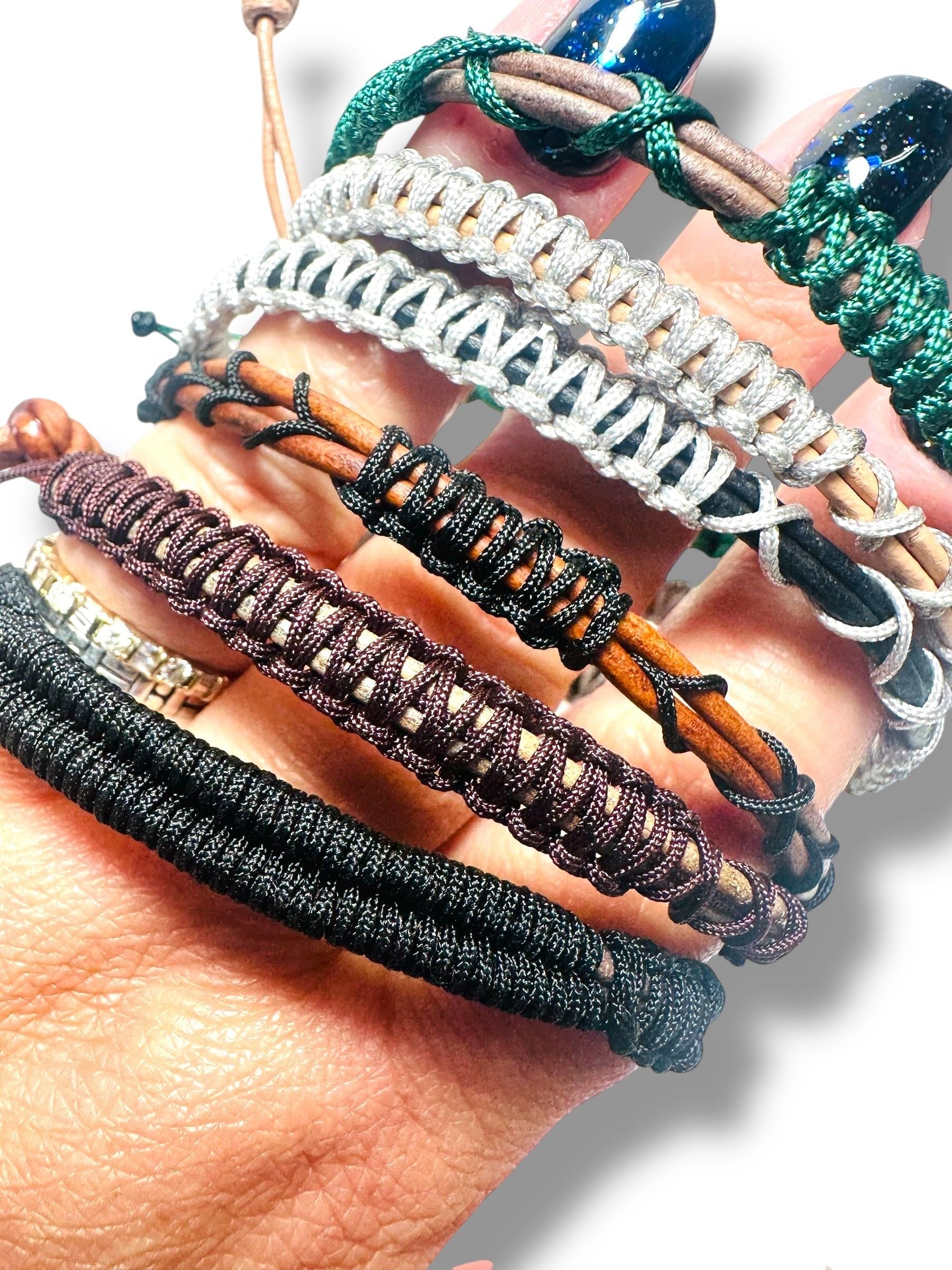 Men’s bracelet- Large wrist- adjustable. Woven with durable Nylon cord.