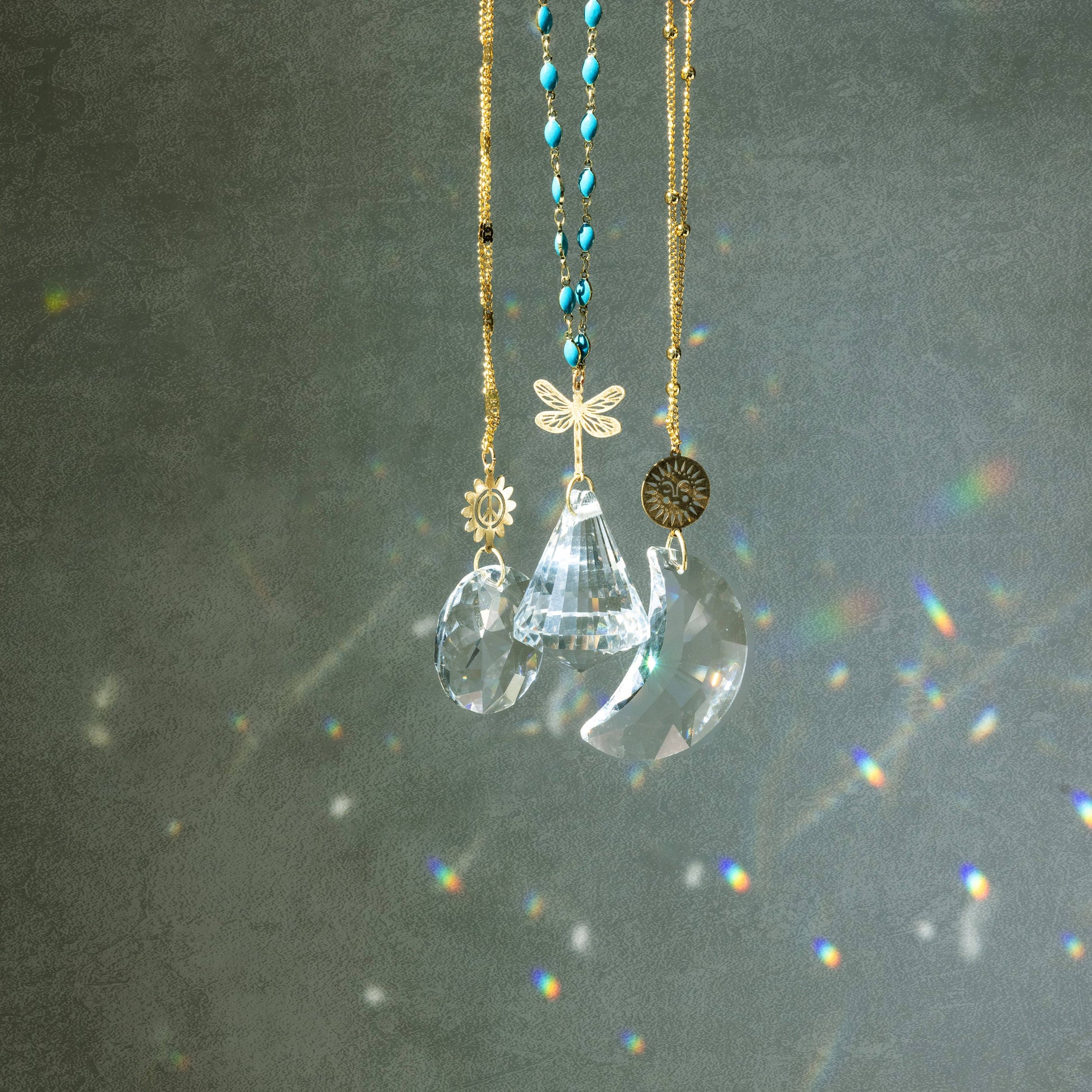Designed to replicate the success of our best selling suncatcher collection but with a charming update, each suncatcher features a faceted glass crystal and tiny brass charm in one of eight nature inspired designs. Each intricate chain is unique to enhance the look and quality of our Pocket Suncatchers. Hang these tiny rainbow makers from a plant, in a window or on the rear-view mirror for a burst of sparkling joy anywhere you go.