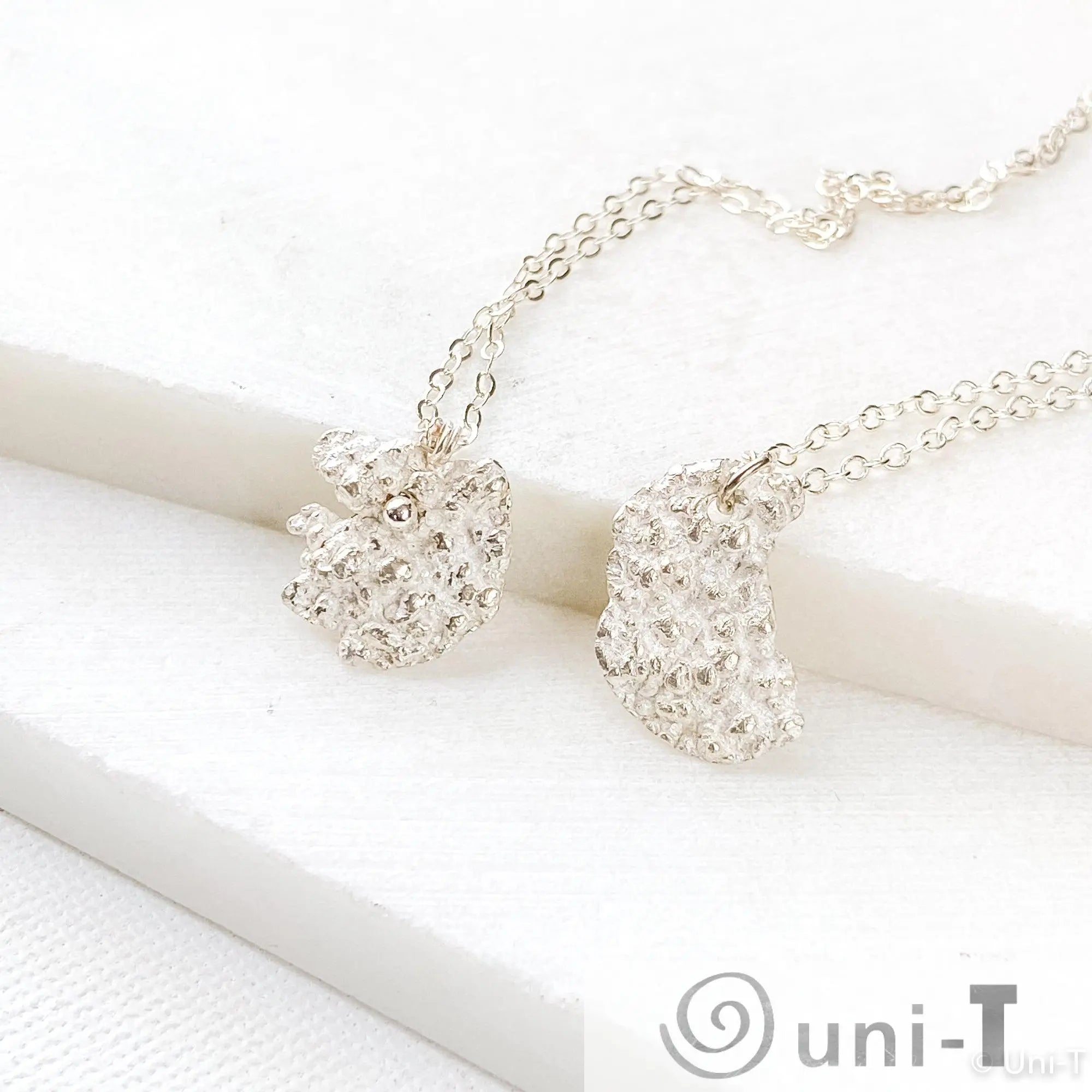 Silver Lava Impression Necklace, Precious Metal Clay 99% Silver with Sterling Silver Chain